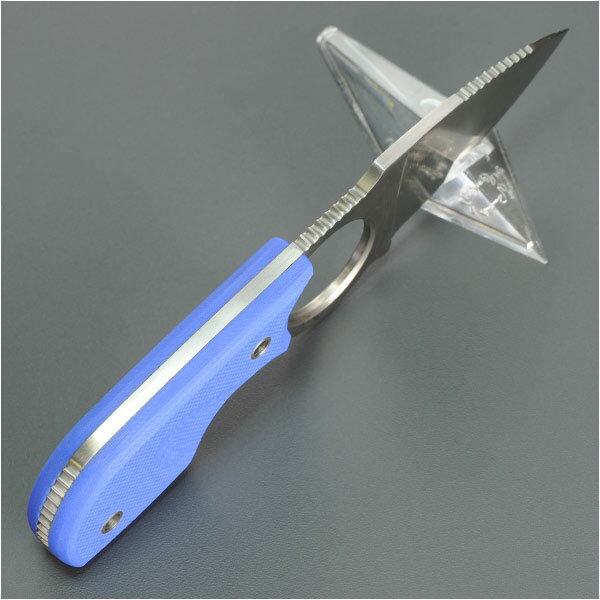 ブレード素材にはAUS-8を使用し、ハンドルにはG-10を使い、人差し指を入れることができる穴があることで小さいながら握りやすくなっています。