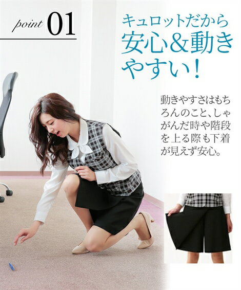 事務服 スーツ レディース ベスト キュロット セット 制服 オフィス 仕事 ビジネス 丈54cm 5号 7号 9号 11号 13号 黒 黒 ドット裏地 黒系チェック 黒 黒地ストライプ 紺 nissen 制服 オフィス ビジネス 仕事 OL 女性 ニッセン