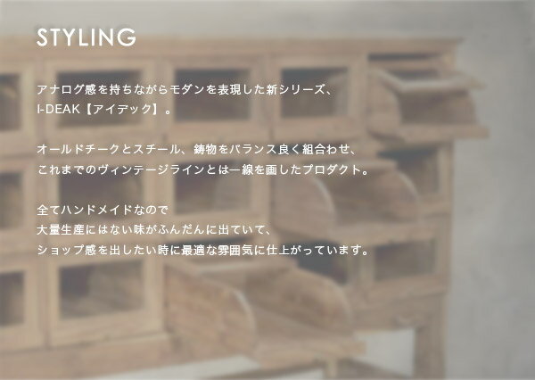 メーカー希望小売価格はメーカーカタログに基づいて掲載しています Size 商品サイズ:W990×D460×H1500mm 梱包サイズ:W1050×D530×H1540mm 重量:約102kg 材質 オールドチーク/ブラス/ガラス/スチール 生産国 インド 備考 ・こちらの商品は全てハンドメイドで作られています。