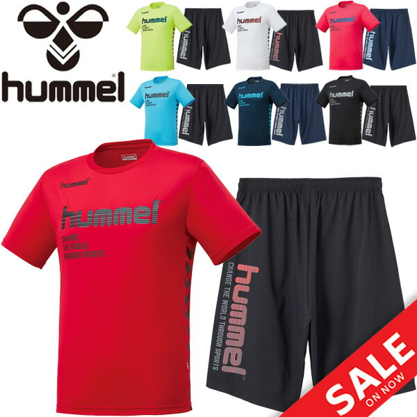SALE★半袖Tシャツ ハーフパンツ 上下セット メンズ レディース ヒュンメル hummel プラクティスシャツ ウーブンパンツ 上下組 スポーツウェア サッカー フットサル ハンドボール トレーニング 部活 セットアップ/HAP4129-HAP2065