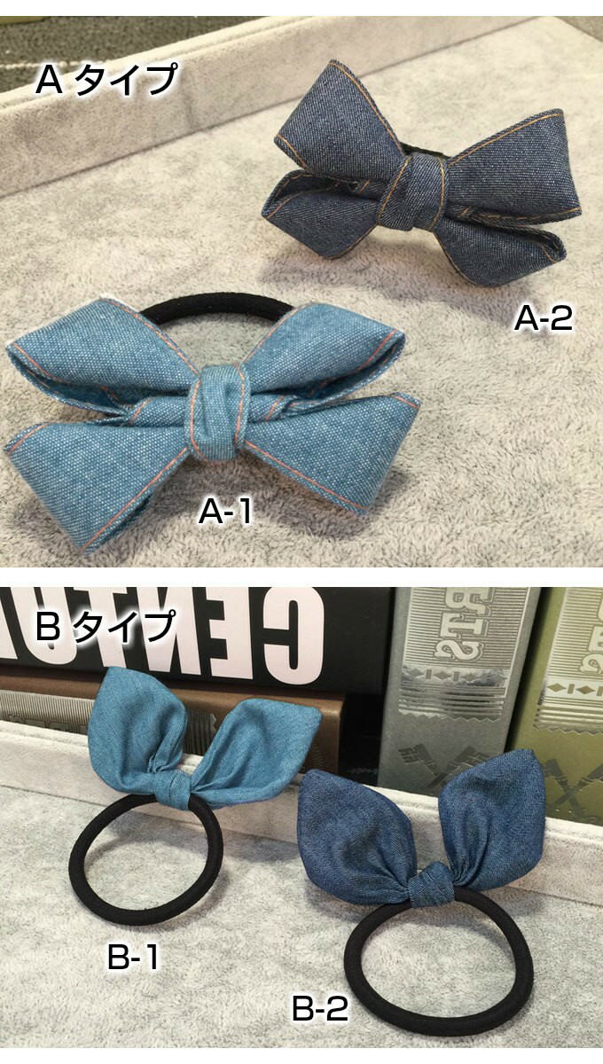 ヘアゴム かわいい リボンゴム デニム うさみみ キッズ レディース シンプル hg-067