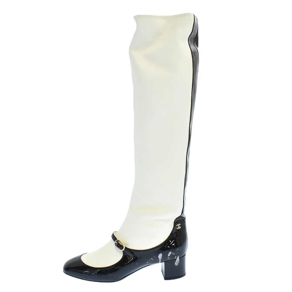 CHANEL(シャネル)サイドジップパテントレザー切り替えロングブーツ G26921【中古】【程度B】【カラーブラック】【オンライン限定商品】★お買い物マラソンSALE 4/28 0:00〜4/29 23:59★