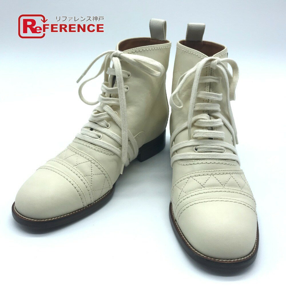 CHANEL シャネル G29685 CC ココマーク ショートブーツ レースアップ アパレル 靴 ファッション ブーツ レザー レディース ホワイト アイボリー系 新品同様 【中古】